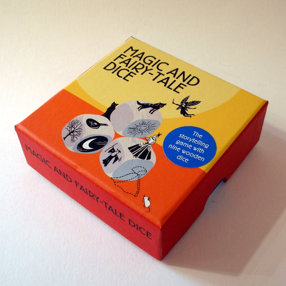 Revive the art of storytelling using these nine beautifully illustrated wooden dice to create the most imaginative, funny and bizarre stories. “Once upon a time there was a beautiful princess, who lived all alone in an enchanted forest with only a top hat and a magnifying glass for company. One fine day, a singing frog on a broomstick flew past and... “